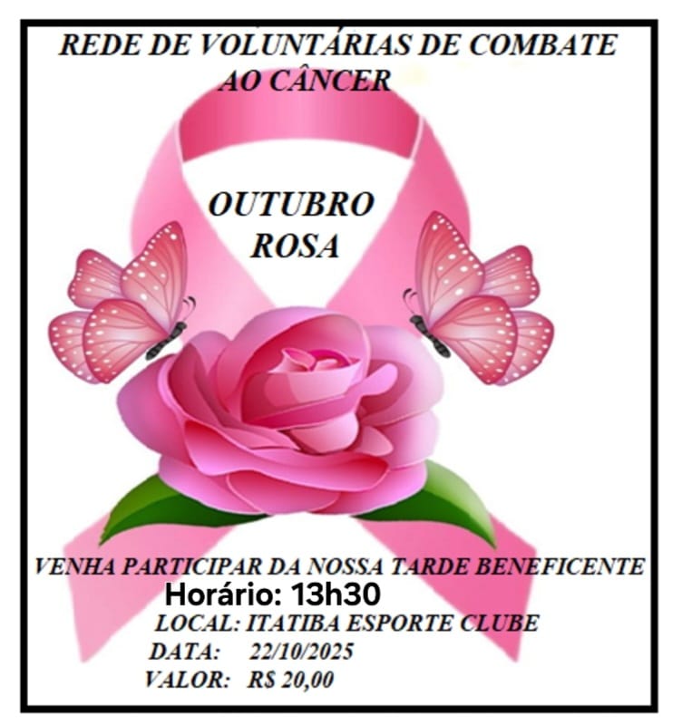 Um dos pontos altos na comemoração do Outubro Rosa, é a Tarde Beneficente, realizada todos os anos pela REDE de Voluntarias de Combate ao Câncer de Itatiba, com intuito de promover um alegre encontro entre nós itatibenses, apoiando nossa REDE para que possa cumprir com seus objetivos! Será no próximo dia 22, no Itatiba Esporte Leia mais sobreOutubro Rosa – Tarde Beneficente[…]